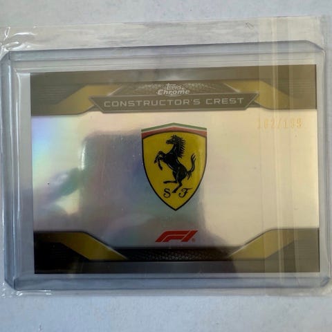 Topps Chrome F1 Scuderia Ferrari Team Logo samlekort. Kortet har nummer 113 og er vurdert til tilstanden Mint 9 av PSA. Kortet er innkapslet for beskyttelse.