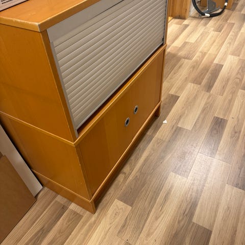 Modulbasert oppbevaringsenhet med hjul, laget i lyst tre med hvite skuffer og skyvedører. Enheten har tre skuffer med håndtak og lås, samt hyller for oppbevaring. Egnet for kontor eller hjemmemiljø hvor fleksibel og mobil oppbevaring er ønskelig. H: 128 x B 80 x D: 42. Lett adkomst for henting på Ryen. Pris pr. stk. PS. Har eventuelt 2 til om ønskelig.