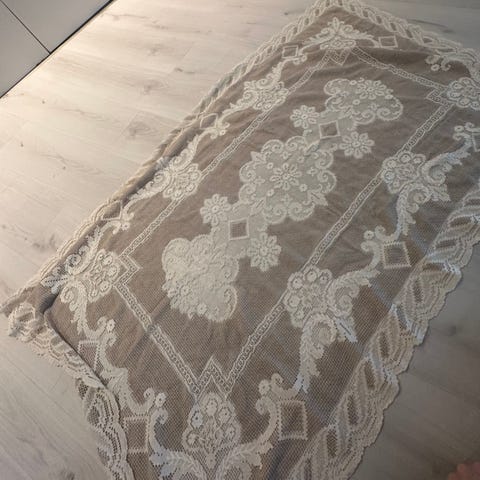 2 stk duker selges samlet kr 100. Lengde ca 105 x 33 og 80 x 20 cm.