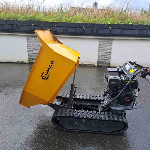 Med opptil 1 000 kg nyttelast og 0,52 m³ tippvolum håndterer den enkelt jord, grus og byggematerialer.