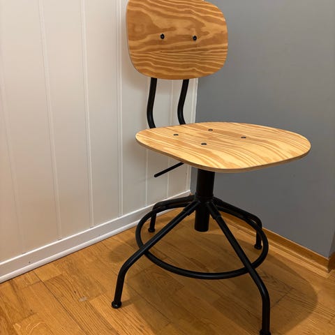 Behagelig stol uten harde kanter. Enkel å rengjøre med fuktet klut.