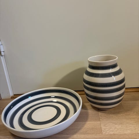 Kähler dekorasjonsornament i keramikk formet som et hus med flere vinduer. Brukes som dekorasjon i hjemmet. Den store koster 299 ny, men selges samlet kr 300.