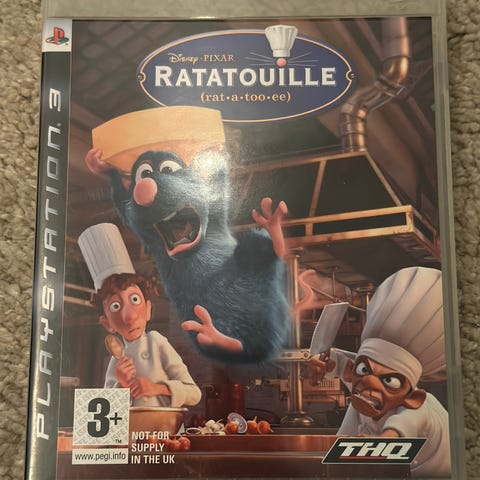 Disney Pixar Ratatouille Playstation 3 spill basert på filmen Ratatouille. Inkluderer spilldisk og instruksjonshefte. Passer for aldersgruppen 3 år og oppover.