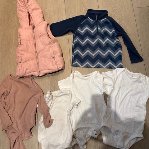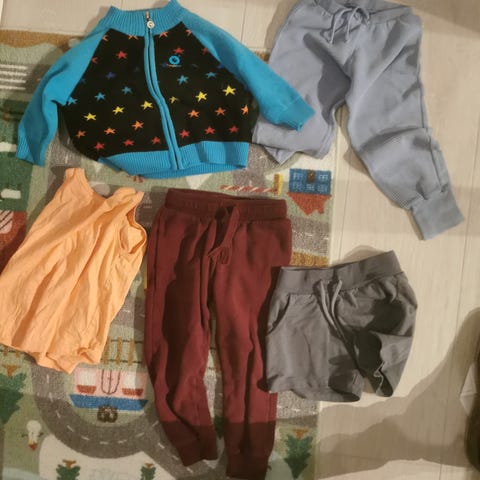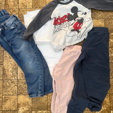 Klespakke gis bort- 2 bukser, 2 genser og pannebånd 98-110