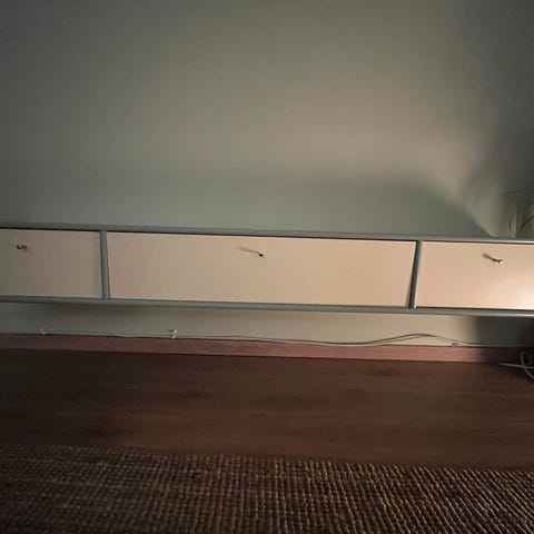 Pent brukt kvalitetsmøbel fra Hammel Furniture, har noen bruksmerker. Minner om Montana-tv benk. Ser disse ligger på rundt 15.000kr nye i dag. Det er mulig å bytte knottene.