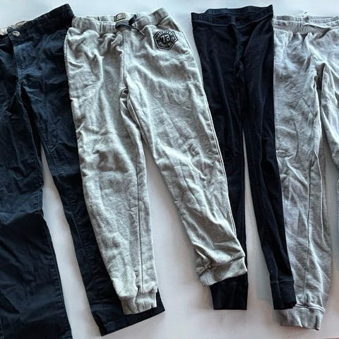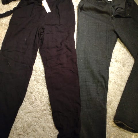 En svart fin bukse og beige linbukse.