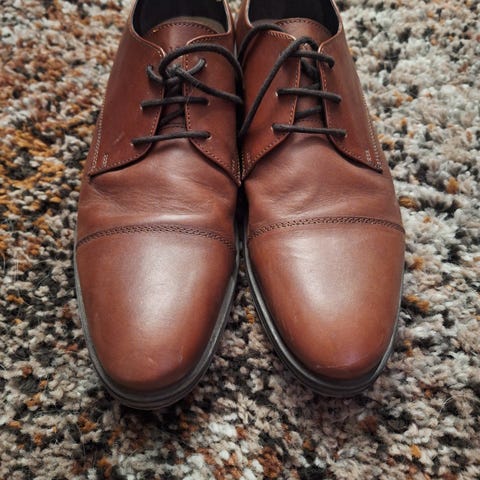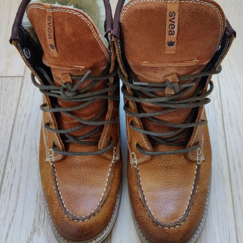 Pensko i brun skinn, størrelse 37. Skoene har snøring og en såle med mønster for bedre grep. Designet for gutt str 37.