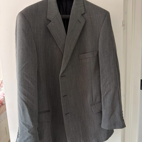 Digel gråspettet blazerjakke str 58. 55% ull, 15% polyester og 30% viskose. Kjøpt hos Isaksen, Porsgrunn og nesten ikke brukt. Selges kr. 500,-