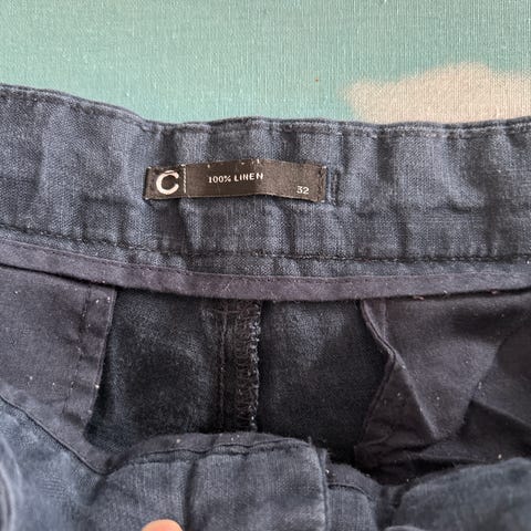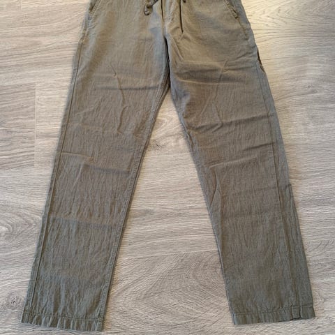 Cubus bukser i størrelse S, laget av linblanding i grønn farge. Bukser med elastisk midje og snor for justering. Lommer i siden. Pent brukt.