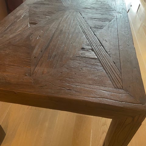 Cape Cod er et rustikt spisebord som er lagd av sandblåst vokset alm. Denne kombinasjonen gir assosiasjoner til værbitt treverk, som gjør bordet så unikt og effektfullt.