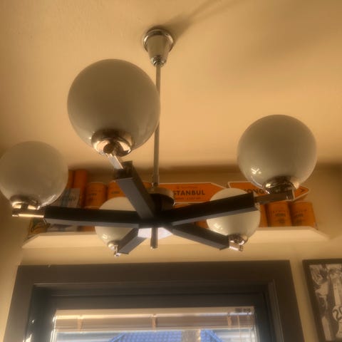 Svensk vintage taklampe kjøpt på Bacchusantik i Stockholm for noen år siden.