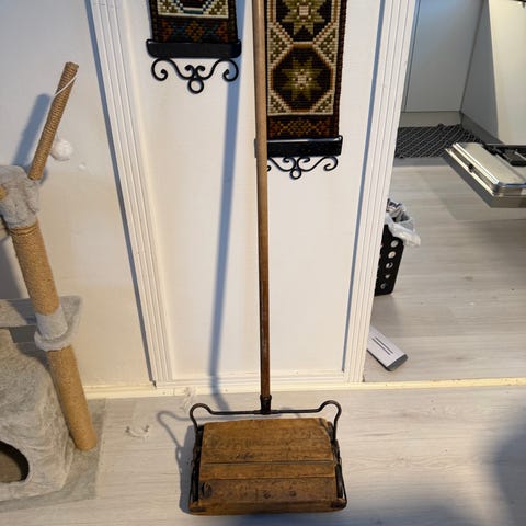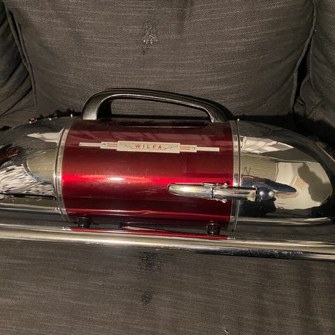 Selger en gammel klassisk Hoover støvsuger 220 v, fra ukjent årstall, er nok ganske sjelden, passer inn i klassisk hjem der antikviter blir verdsatt. Fungerer greit, men er nok best egnet som pyntegjenstand. 1000 eller hbo over.