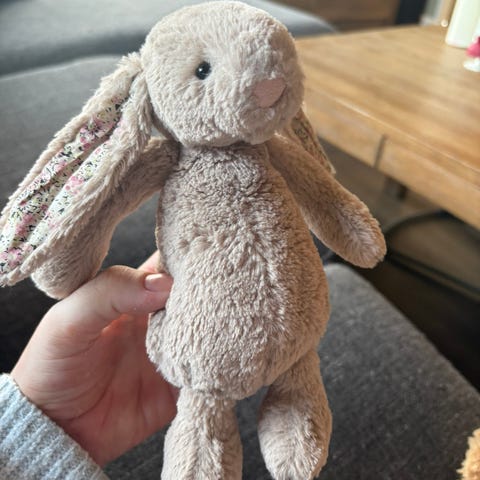 Den er ikke kost med, kun stått på hylla med resten av jellycat bamsene mine.