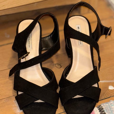 Høyhælte, svarte sko med reim i str. 36. Passer til allslags anledninger 💃🏽💃🏽💃🏽
