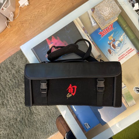 Flott skinn etui/oppbevaring av kniver/verktøy.Produser/designet av Øyo-Norsk kvalitet.Fremstår som nytt.bud