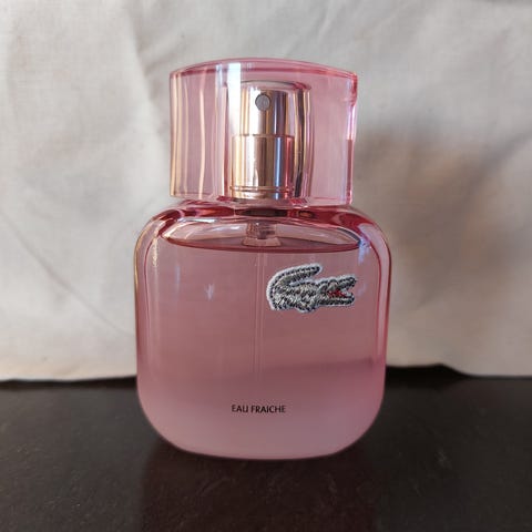 Lacoste Eau de Lacoste L.12.12 Pour Elle Sparkling parfyme med en volum på 90 ml. Flaske i gjennomsiktig rosa glass med dekorativt design på esken. Bare vært prøvd og selges da den ikke passer meg 😊