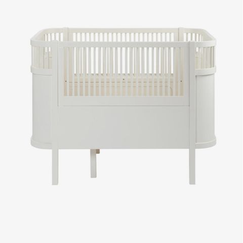 Det medfølger både liten (spedbarn-størrelse) og stor madrass (junior-størrelse) + en hvit semgeskuff fra Sebra med hjul til å oppbevare leker og diverse under sengen (veiledende pris ca 1900kr).