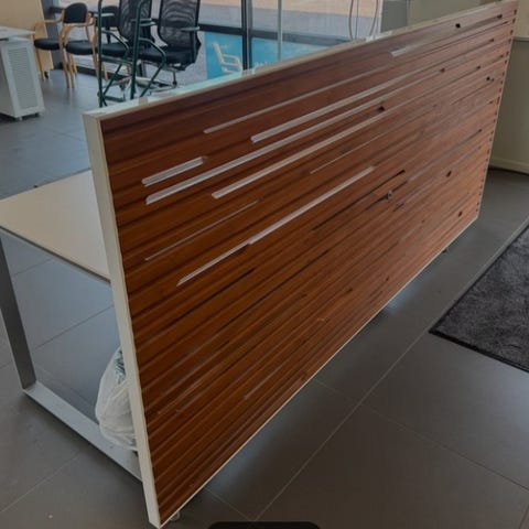 Tekstiltrukket utførelse med god akustisk demping. Pent brukt, rett fra kontormiljø.