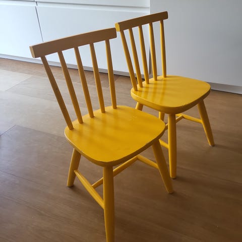 1 koselig barnestol i heltre selges rimelig. Den er i god stand.