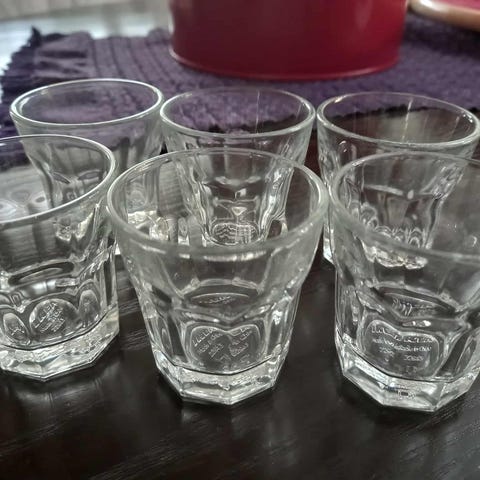 11 stk klassiske shotglass i klart, tykt glass. Standard størrelse. Pent brukt, ingen sprekker eller skader. Passer til bar eller fest.