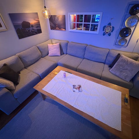 Mørk grå Siero hjørnesofa, kjøpt ny hos Møbelringen ultimo 2021. Salgsgrunn har jeg fått beskjed om å skrive er på grunnlag av flytting. Den egentlige grunnen er at samboer ønsker lysere møbler…