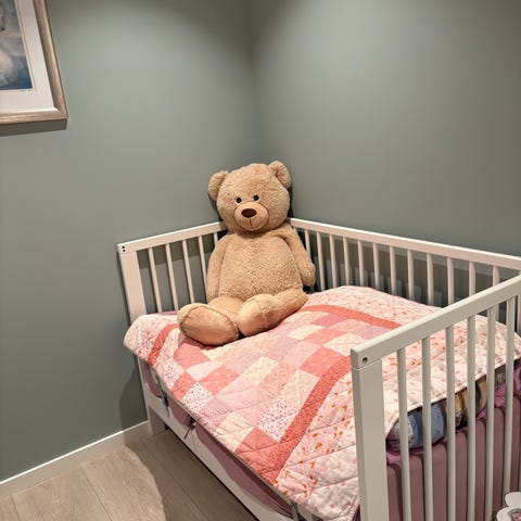 Sengen er pent brukt, med unntak av noen skraper øverst på ene siden etter babycall.