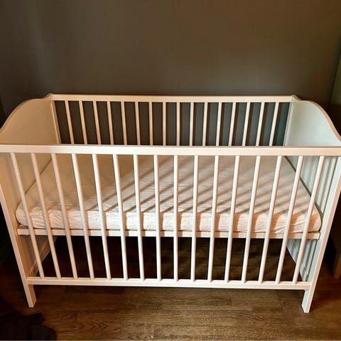 Sprinkelseng med madrass. Seng er kun brukt 1 gang hos besteforeldre, ellers kun stått ubrukt.