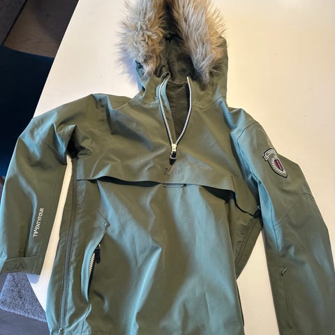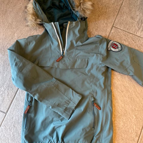 Twentyfour Finse 2 lags anorakk str 10 år selges. Flott modell med avtagbar fuskepels på hetten. Muligheter for å stramme hetten. Glidelås i siden i tillegg til halsen. Stor lomme på brystet.