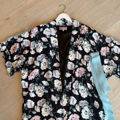 Vero Moda kimono i flerfarget mønster. Veldig Versace inspirert ifarve og mønster, Passer dame i størrelse S. Laget i lett materiale med dekorative detaljer og belte i livet. Kan styles på forskjellige måter, både åpen og lukket med belte.
