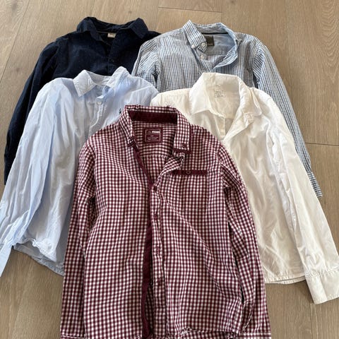 5 skjorter i str 134 - 140 selges. Fremstår pent brukt, så ingen tydelige merker. Men normale bruksmerker kan forekomme.