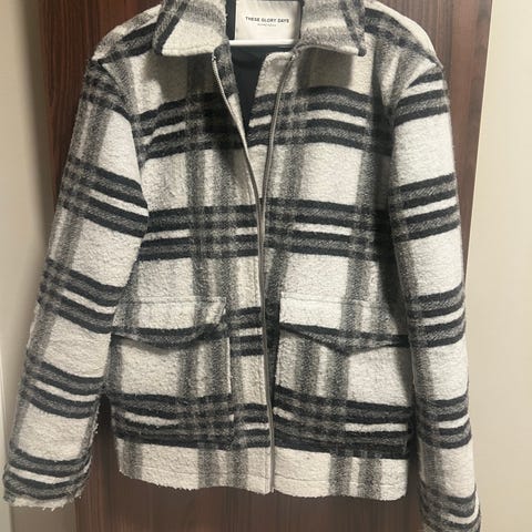 These Glory Days Ull Jakke / Skjorte i størrelse S, farge grå. Laget av 30% ull og 70% polyester med detaljer i 38% ull, 33% polyester, 18% akryl og 11% nylon. Jakken har knappelukking og to brystlommer.
