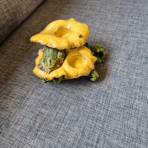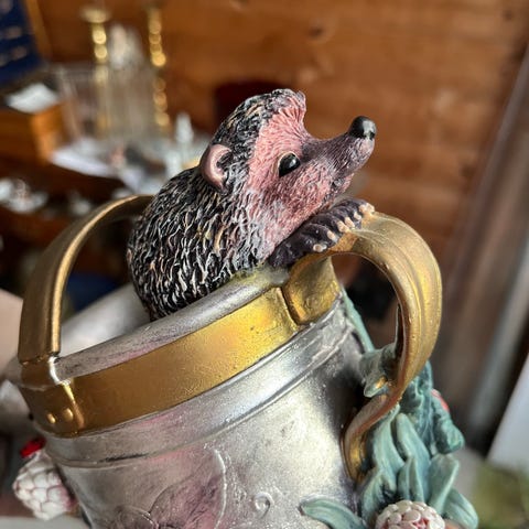 Bramble and Clover, Mariell design kronelysestake / dekorasjonsfigur med detaljer som jordbær, blomster og marihøner. Figuren har en naturlig og fargerik design med fokus på hage- og naturmotiver.