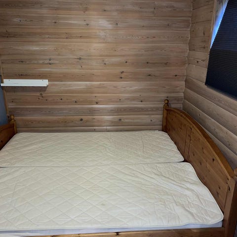 Seng gis bort. Bare sengen gis bort - ikke madrasser. Den er litt defekt når den er dobbelt. Som enkelt så er den helt i orden. For å få den dobbel - må kunne skru på noen sidelister Blir ikke demontert- så det trenges en henger eller varebil. (Det er nemlig 2 x 90 cm senger, den ene kan skyves under den andre. )