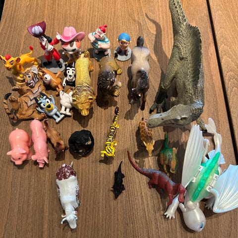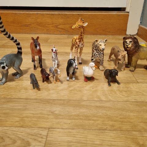 Masse forskjellige dyre figurer.