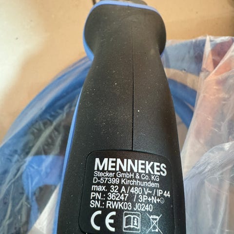 Ny Mennekes Ladekabel Type 2 med 32A strømstyrke, 3-fase, 5 meter lengde. Kabelen leveres med oppbevaringsetui og er egnet for elbiler med Type 2 ladekontakt.