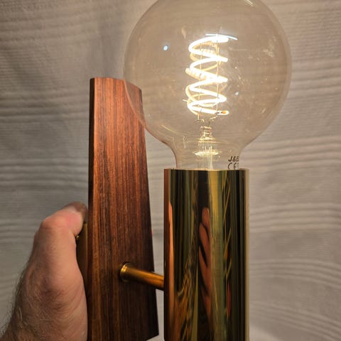 Pen dobbel vintage vegglampe i kobber og palisander.