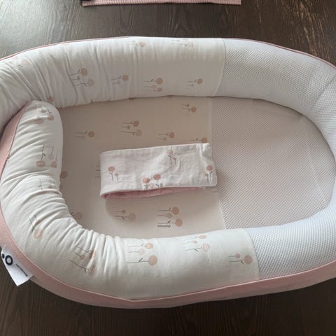 Carena babynest i beige farge med mønster. Babynesten er laget for å gi et trygt og komfortabelt sted for babyen å hvile. Passer for nyfødte og små babyer.