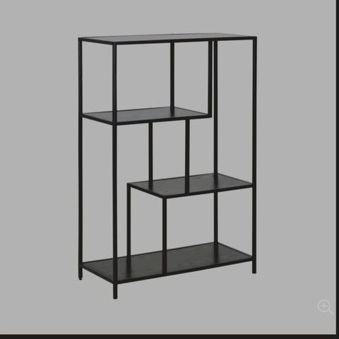 En skapmodul med hyller og doble paneldører, og to skapmoduler med hyller. Alle tre har sokkel.
