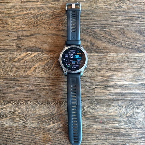 Garmin Epix Gen 2 smartklokke med 47 mm urkasse i fiberforsterket polymer. Klokken har GPS og multisportfunksjoner, samt vanntetthet opp til 100 meter.