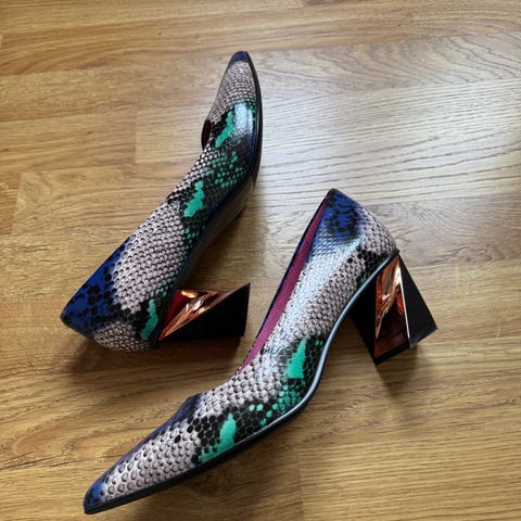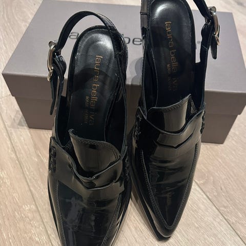 Pensko av god kvalitet. Høgde på hel er 7 cm. Små merker på helene. Selges da skoa er for smal over rista for min fot.