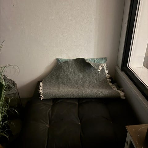 En helt fin to-seter gis bort da jeg må bli kvitt alle møbler, fordi jeg skal flytte utenlands.. den har en litt uheldig flekk på seg, da jeg prøvde å vaske bort en liten sminkeflekk..