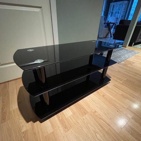 Vegghengt stereorack/TV-møbel med 3 hyller i herdet glass