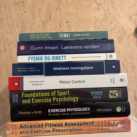Pensumbøker: trening/ernæring/anatomi + fransk/spansk + BIologi 1