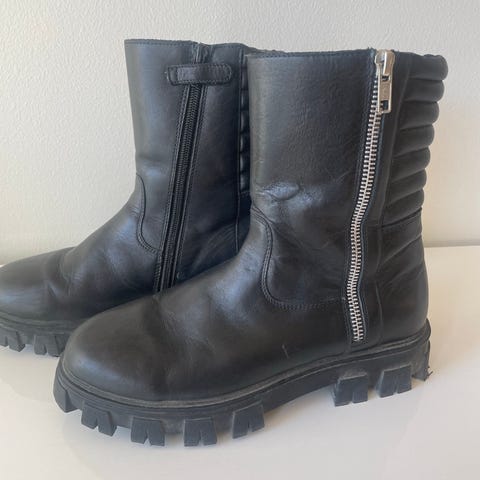 Barneboots unisex i størrelse 37. Bootsene er laget i brunt skinn med snøring foran og solid såle. Egnet for barn og unisex bruk.