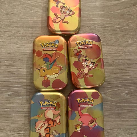 2 stk Pokémon TCG 151 mini Tins med motiv av Gengar og Meowth. Nye og forseglet.