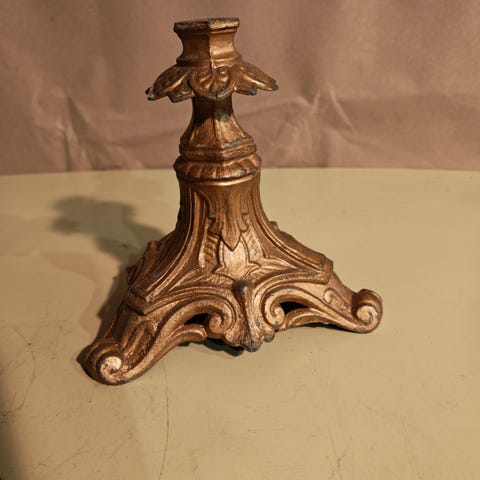 Lysestaker i messing med julemotiv . Rød emalje med gule stjerner. De er 30cm , 25cm og 20cm høy og 10 cm under. Selges samlet 250