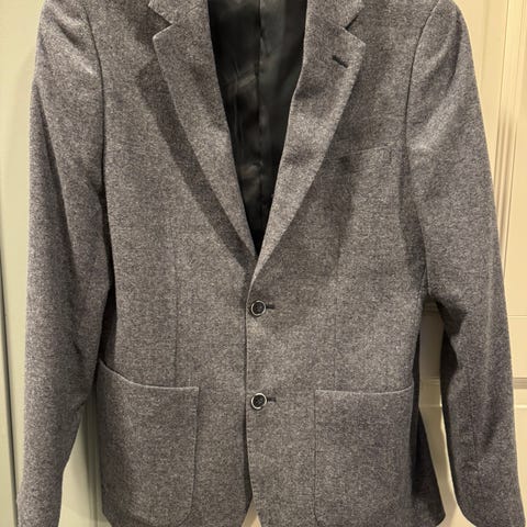 Stilren blazer fra Mario Conti i klassisk blåfarge. Pent brukt og godt holdt. Ermene er lagt opp ca. 5 cm, noe som gir en penere og mer tilpasset passform.
