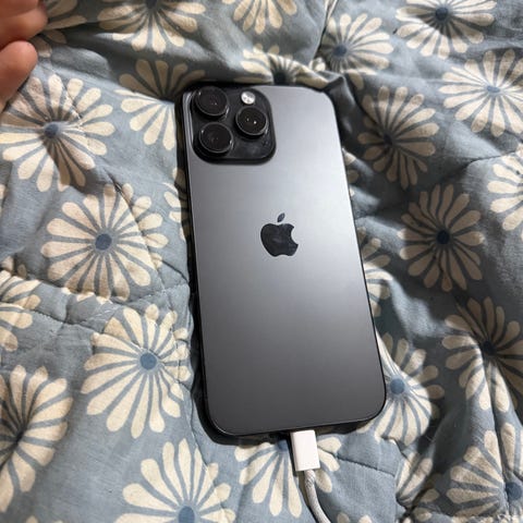 Apple iPhone 16 Pro Max med 256 GB lagringskapasitet. Telefonen er brukt, men alltid beskyttet med deksel og uten riper i skjermen. Batterikapasiteten er på 95 %. Kjøpt 11.12.2024 og selges for 10 000 NOK.