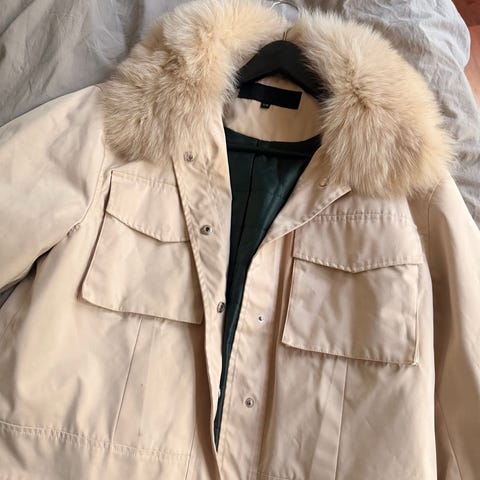 Selger en lite brukt og pen pels kåpe fra Meotime.