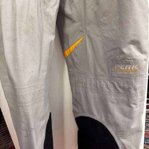 Bib-bukse med gore tex-membran fra Peak med seler. Størrelse S. Pent brukt, kun noen merker. Ingen rifter, men hanken på en glidelås er knekt av (se bilde)